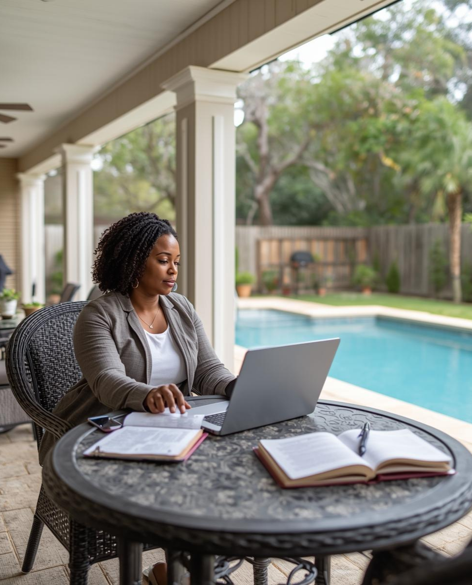 To sell the lifestyle, you have to show the setup. A high-performer doesn't just "sit" by the pool; they engineered the space for breakthroughs.