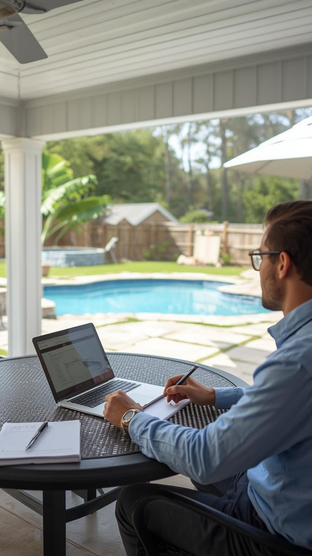 The Glare-Free Strategy: Strategic placement of pergolas or cantilever umbrellas isn't just about shade; it’s about tech. Buyers want to see that they can keep their laptop screens visible while maintaining that restorative view.